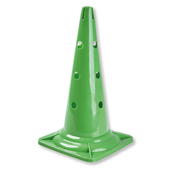 Dieser Lochkegel ist mit zwölf Löchern ausgestattet und kann in Kombination mit Turnstäben auch als Hürde, Slalomstange oder kleines Tor benutzt werden. Ausserdem kommen die Markierkegel gerne bei verschiedenen Teamsportarten in den Trainingseinheiten zum Einsatz. Vielfältige Übungsformen zu Koordination, Dribbling oder Beweglichkeit sind möglich.
