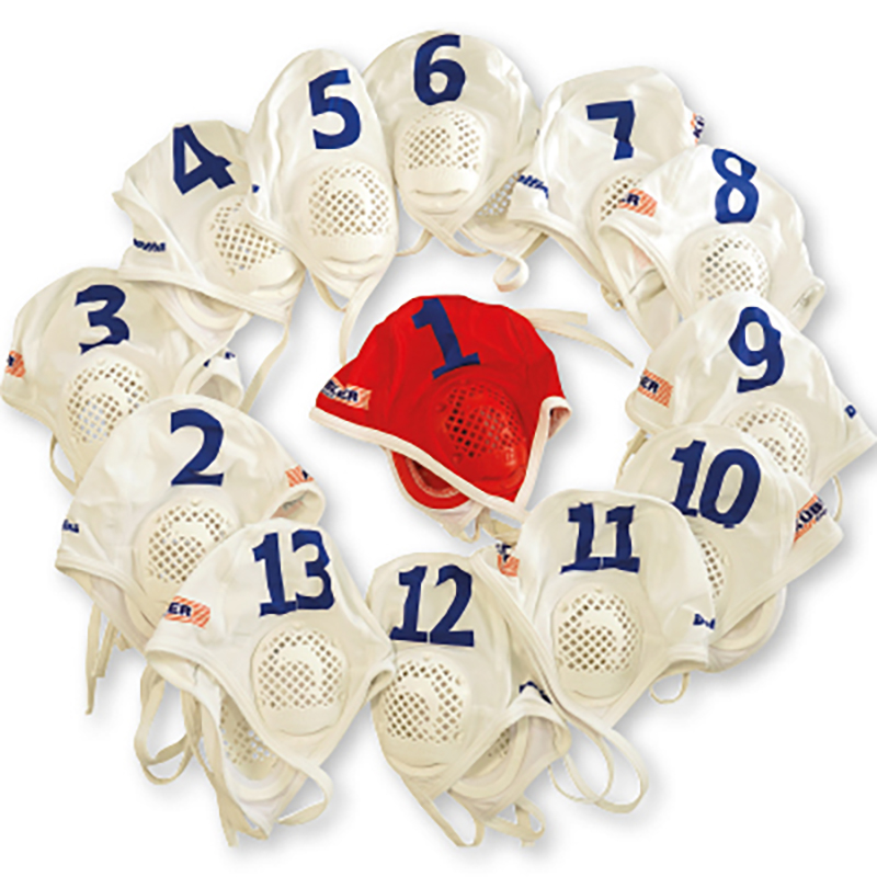 Es sind hochwertige Wasserballkappen mit Nummerierung. Das Set besteht aus einem vollständigen Satz aus 13 Kappen gemäss neuer FINA und LEN-Vorschrift.