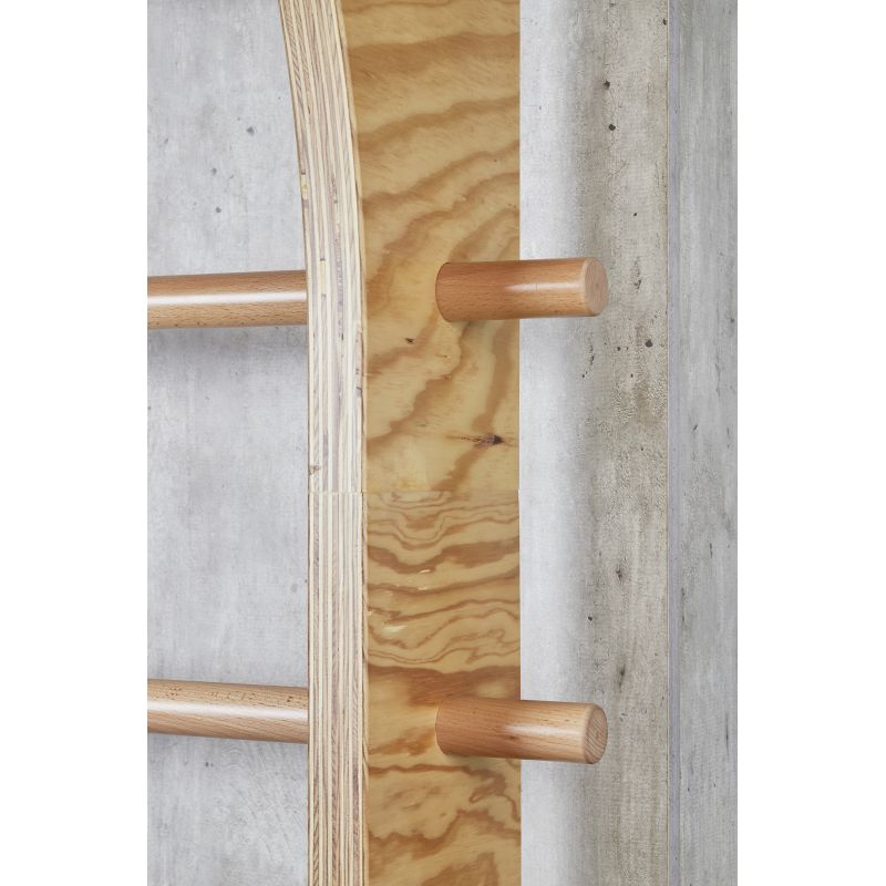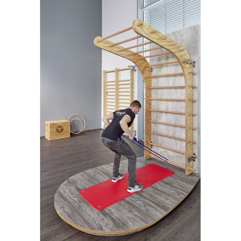 Neuartige und patentierte Sprossenwand, die sich für den Einsatz im Fitnessstudio, in der Physiotherapie oder das Training in den eigenen vier Wänden eignet. Die besondere Form mit Überhang bietet dabei unzählige Trainingsmöglichkeiten.