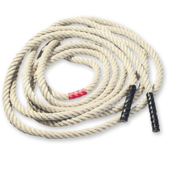 Das griffige und zugfeste Tau besteht aus 100 % Polypropylen, was 25 mm stark ist. Die Enden des Ziehtaus sind mit Kunststoffabschlüssen versehen, die Mitte ist rot markiert. Auch für den Aussenbereich geeignet, da es wasserabweisend ist.